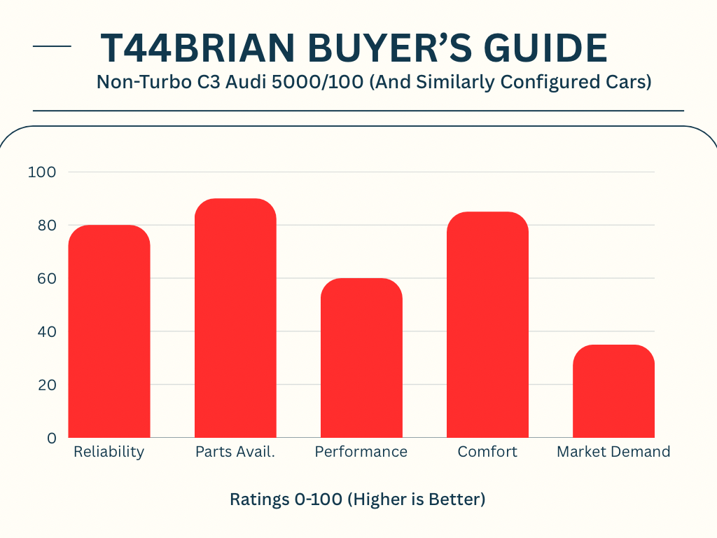 Personality Profile: The driving experience with a non-turbo C3 is dependent on what drivetrain it has. In North America, we never got a taste of some of the most underpowered offerings available for this chassis and were at least always guaranteed catalyst-equipped 5-cylinders and 100 horsepower. Griff is a later car with the first run of the 2.3 NF engines Audi would use all the way up to 1991 – which bumped the standard horsepower from 130 compared to the ’84’s 2.1L making 100 and the ’85-86’s 2.2L with 115. When equipped with an automatic, the power difference between the three is undetectable. When paired to a 5-speed, you finally feel a little more get up and go around town. And that makes Griff just that much more fun to drive, even if its still a relatively leisurely task to get up to highway speeds.